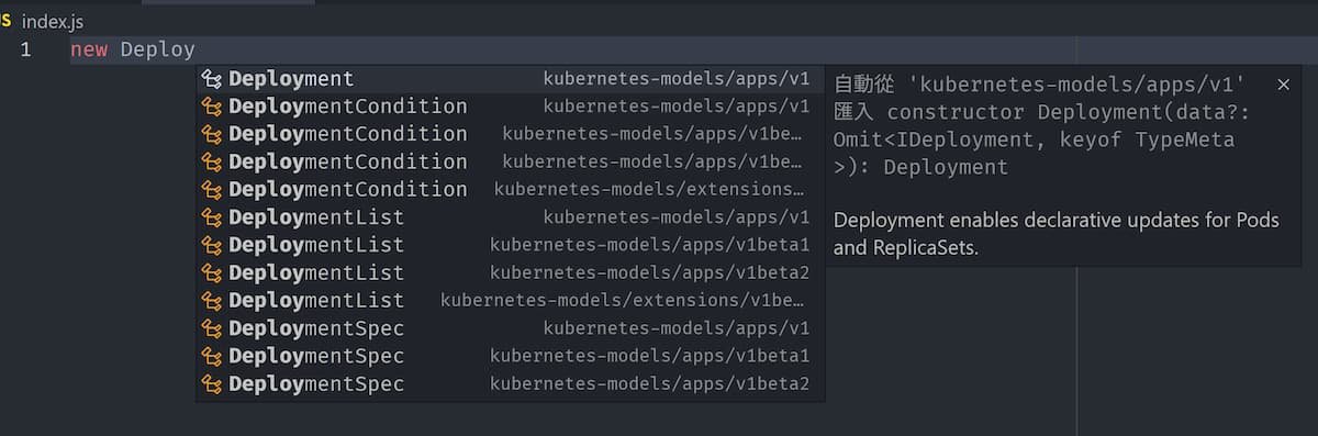 Last, a new type TypeMeta has been added to @kubernetes-models/base package. Interfaces with apiVersion and kind will extend TypeMeta type now. This can remove doc comments in each type.